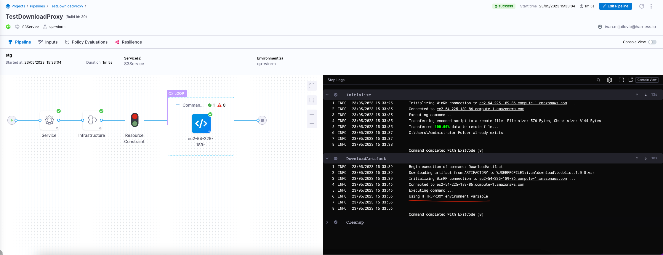 While the pipeline is running, you will see Using HTTP_PROXY environment variable